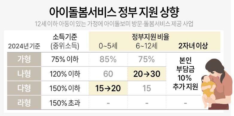 무엇보다 중요한 점은, 이제 이 서비스가 더 많은 가정으로 확대되었다는 사실이에요. 과거에는 중위소득 150% 이하 가정까지만 정부 지원을 받을 수 있었지만, 최근 제도 개편으로 중위소득 200% 이하 가정까지 지원 대상이 확대되었답니다.
